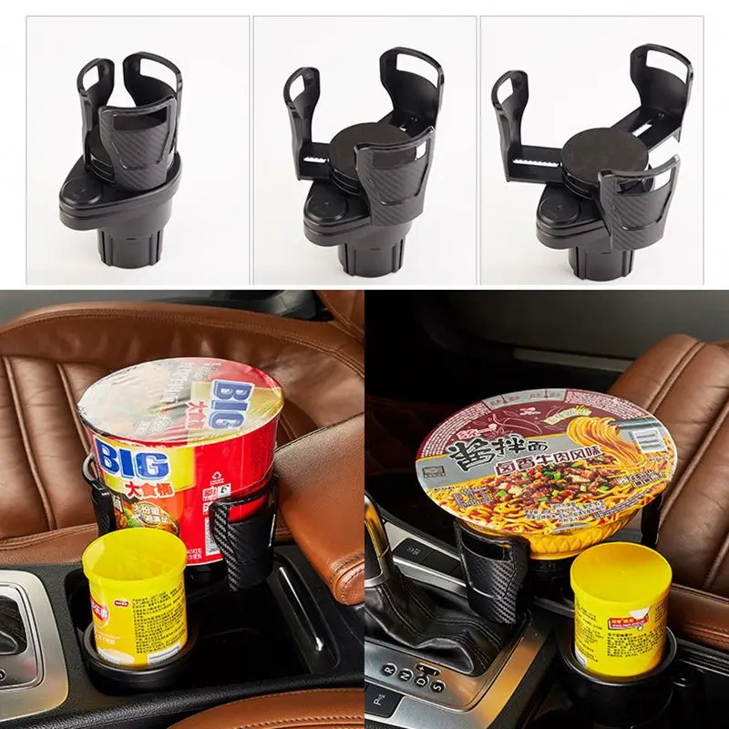 Multifunctional 2-in-1 Car Cup Holder – Durable ABS holder with adjustable diameter (7.4–15cm) to fit most cups, bottles, and mugs. Lightweight, stable, and available in matte black or carbon fiber black.